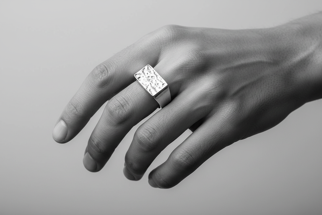 Pierścionek Malleo to hołd dla rzemiosła i osobistej przemiany. Ręcznie kute z najwyższej próby srebra, każde uderzenie młotka odzwierciedla siłę i piękno życiowej podróży. Malleo to nie tylko biżuteria; jest symbolem odporności i wyjątkowości. Noś go jako dowód swojego rozwoju osobistego i indywidualności.