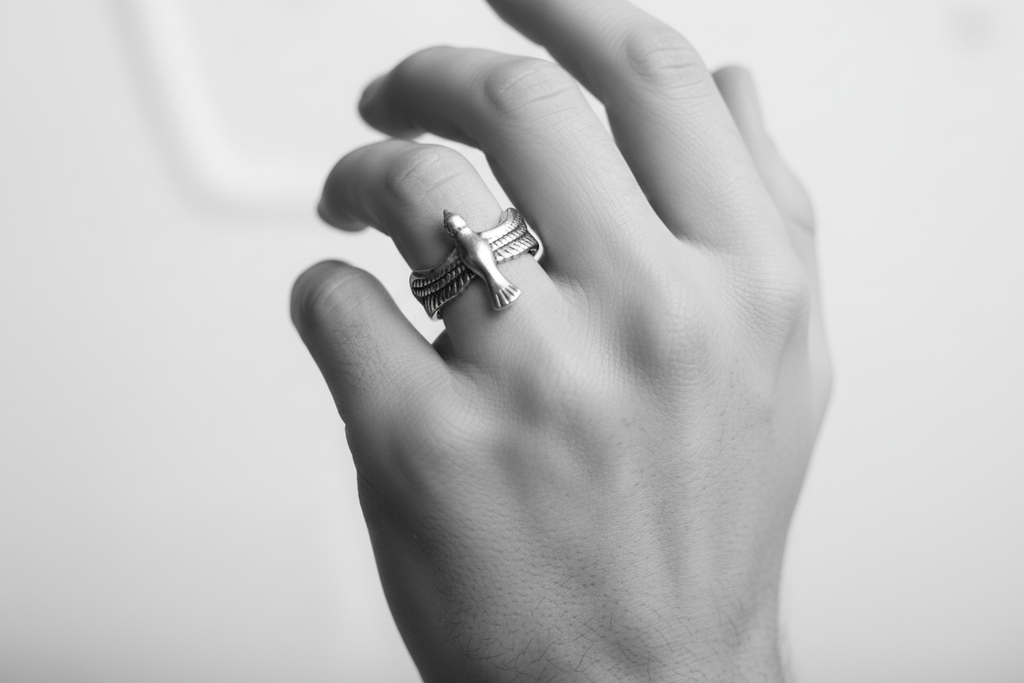 Ptak symbolizuje wolność, siłę i zwycięstwo, co jest bardzo wymowne dla tych, którzy mają odwagę nosić taki pierścionek.